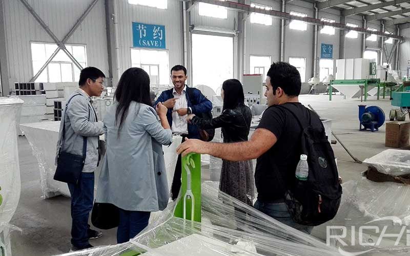 A client from Palestine and Richi Machinery cooperated to establish a 4 ton / hour animal feed pellet production line. The following picture is Palestinian customer who visited Richi Machinery and inspected the factory, products and qualification certificates.